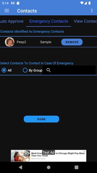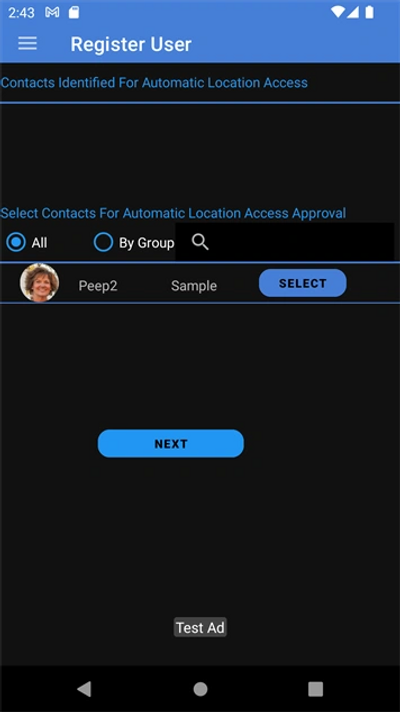 The contacts file on the users phone or tablet, drives definition of who your Peeps are. Login/Registration, Peeps Watcher and Peeps Connects can only be sent and received with users of the app that are on the contacts file. From this feature, users can invite Peeps to download the app, authorize location access and designate emergency contacts.