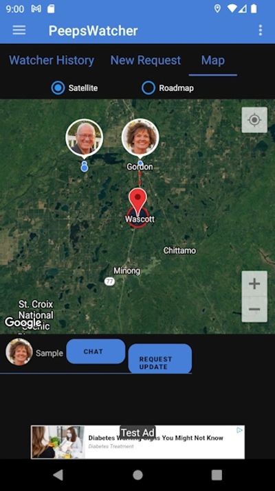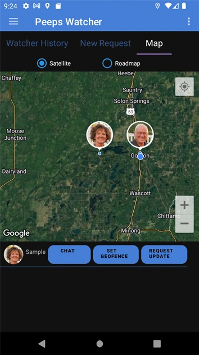 Peeps Watcher allows you (requestor) to request and view on a map, the current location of authorized app users (the requestee). If the requestee has authorized you in advance to access location information, the location will be provided in a matter of seconds. Otherwise, the requestee will get a request notification and can respond accordingly.