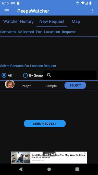 New Peeps Watcher requests can be submitted by tapping the SELECT button on the list of contacts.